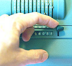 If you are the happy owner of a machine with double registers, such as Odhner 35/135, you put in the hours in the left register, and the minutes in the right register.
